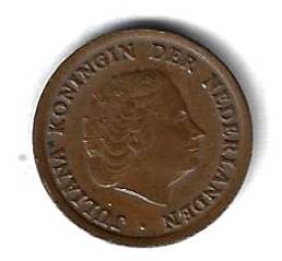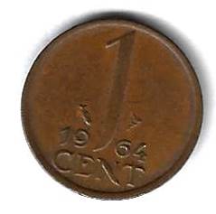 1 цент 1964 Нидерланды Страна: Нидерланды Номер по Краузе: KM# 180 Год: 1964 Буквы: Материал: Бронза Диаметр: 14 мм. Вес: 2.00 гр. Взаиморасположение аверса и реверса: монетное Тип гурта: гладкий. Качество: XF