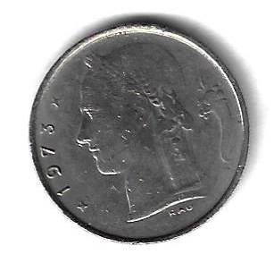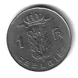 1 франк 1973 Бельгия Страна: Бельгия Номер по Краузе: KM# 143.1 Год: 1973 Буквы: BELGIE Материал: Медно-никелевый сплав Диаметр: 21 мм. Вес: 4 г. Взаиморасположение аверса и реверса: монетное Тип гурта: ребристый. Качество: XF
