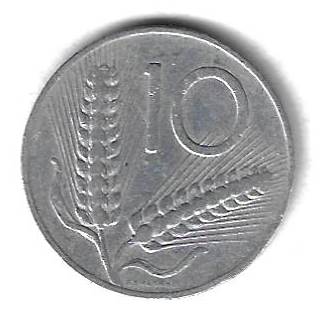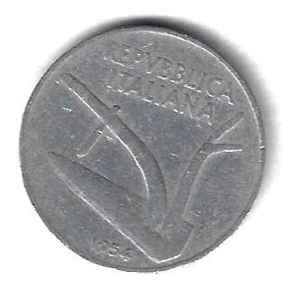 10 лир 1954 Италия Страна: Италия Номер по Краузе: KM# 93 Год: 1954 Буквы: Материал: Алюминий Диаметр: 23.25 мм. Вес: 1.6 г. Взаиморасположение аверса и реверса: монетное Тип гурта: гладкий Качество: XF