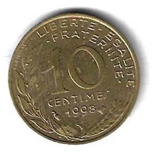 10 сантимов 1998 Франция Страна: Франция Номер по Краузе: KM# 929 Год: 1998 Буквы: Материал: Алюминиевая бронза Диаметр: 20 мм. Вес: 3 г. Взаиморасположение аверса и реверса: монетное Тип гурта: гладкий. Качество: XF