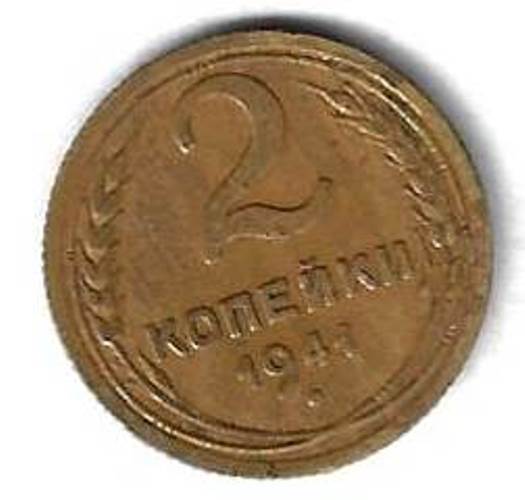 2 копейки 1941 Страна: СССР Номер по Краузе: Y#106 Год: 1941 Буквы: Материал: Алюминевая бронза Диаметр: 18 мм. Вес: 2 г. Взаиморасположение аверса и реверса: медальное Тип гурта: ребристый Качество: XF