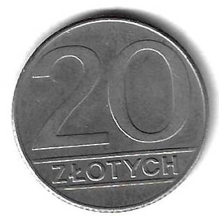 20 злотых 1989 Польша Страна: Польша Номер по Краузе: Y# 153.2 Год: 1989 Буквы: MW Материал: Медно-никелевый сплав Диаметр: 24 мм. Вес: 5.65 г. Взаиморасположение аверса и реверса: медальное Тип гурта: ребристый. Качество: XF