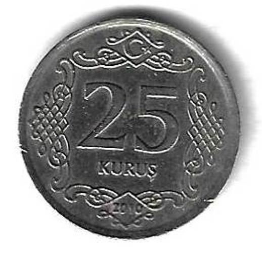 25 курушей 2010 Турция Страна: Турция Номер по Краузе: KM# 1242 Год: 2010 Буквы: Материал: Никель-латунный сплав Диаметр: 20.5 мм. Вес: 4 г. Взаиморасположение аверса и реверса: медальное Тип гурта: ребристый. Качество: XF