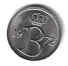 25 сантимов 1972 Бельгия Страна: Бельгия Номер по Краузе: KM# 153.1 Год: 1972 Буквы: BELGIQUE Материал: Медно-никелевый сплав Диаметр: 16 мм. Вес: 2 г. Взаиморасположение аверса и реверса: монетное Тип гурта: гладкий Качество: XF