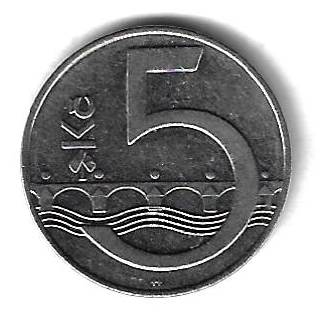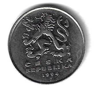 5 крон 1994 Чехия Страна: Чехия Номер по Краузе: KM# 8 Год: 1994 Буквы: crowned b or CM = Jablonec nad Nisou Материал: Никелированная сталь Диаметр: 23 мм. Вес: 4.80 г. Взаиморасположение аверса и реверса: медальное Тип гурта: гладкий Качество: XF