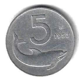 5 лир 1953 Италия Страна: Италия Номер по Краузе: KM# 92 Год: 1953 Буквы: Материал: Алюминий Диаметр: 20.12 мм. Вес: 1.04 г. Взаиморасположение аверса и реверса: монетное Тип гурта: гладкий Качество: XF