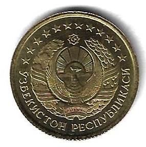 5 тийинов 1994 Узбекистан Страна: Узбекистан Номер по Краузе: KM# 3.1 Год: 1994 Буквы: Материал: Латунированная сталь Диаметр: 21.4 мм. Вес: 3.4 г. Взаиморасположение аверса и реверса: медальное Тип гурта: ребристый Качество: XF