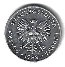 5 злотых 1989 Польша Страна: Польша Номер по Краузе: Y# 81.3 Год: 1989 Буквы: MW Материал: Алюминий Диаметр: 20 мм. Вес: 0.88 г. Взаиморасположение аверса и реверса: медальное Тип гурта: ребристый. Качество: XF