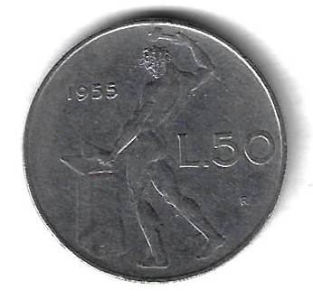 50 лир 1955 Италия Страна: Италия Номер по Краузе: KM# 95.1 Год: 1955 Буквы: Материал: Нержавеющай сталь Диаметр: 24.8 мм. Вес: 6.25 г. Взаиморасположение аверса и реверса: монетное Тип гурта: рубчатый Качество: XF