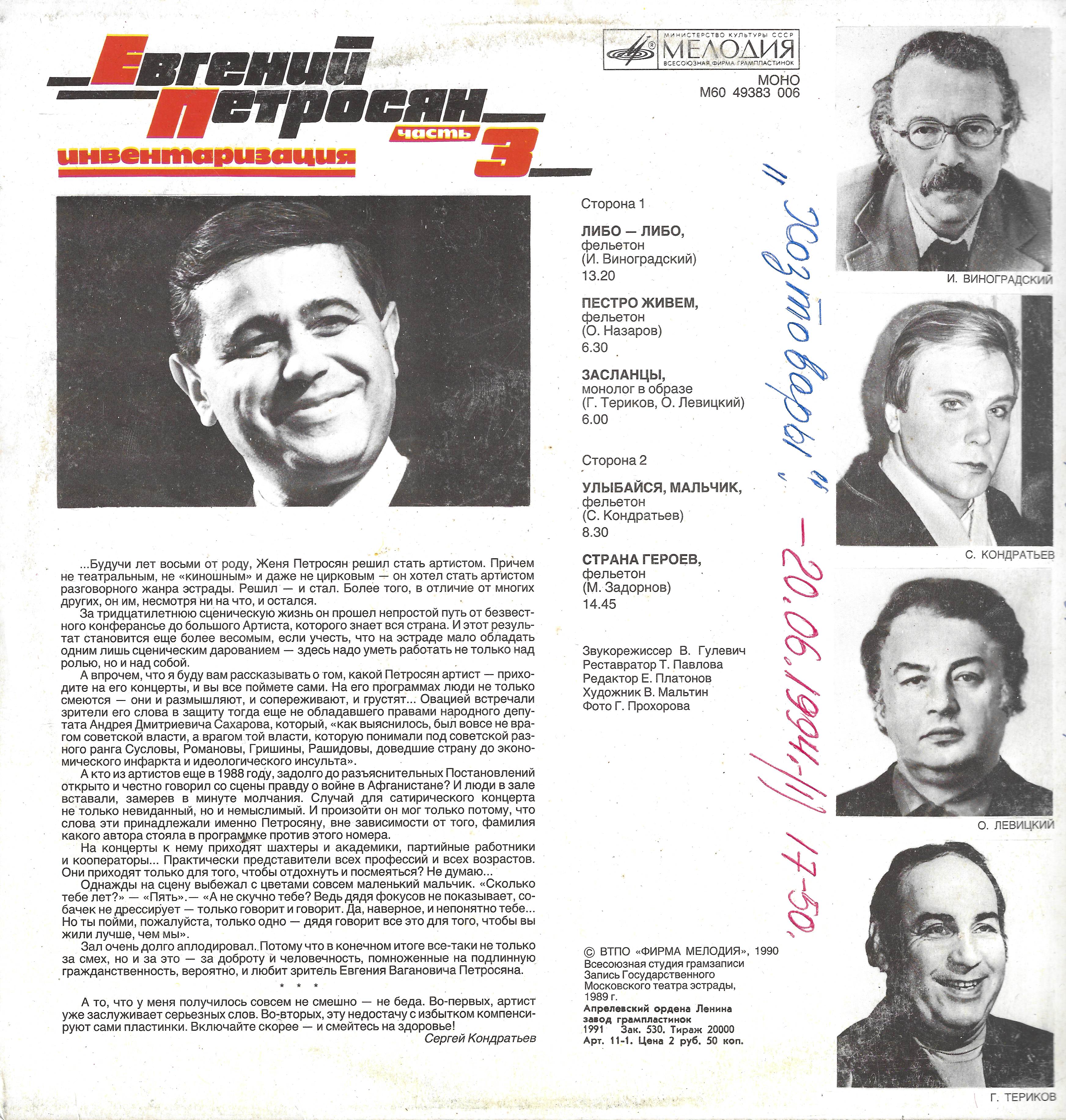 А то, что у меня получилось совсем не смешно — не беда. Во-первых, артист уже заслуживает серьезных слов. Во-_вторых, эту недостачу с избытком компенсируют сами пластинки. Включайте скорее — и смейтесь на здоровье!