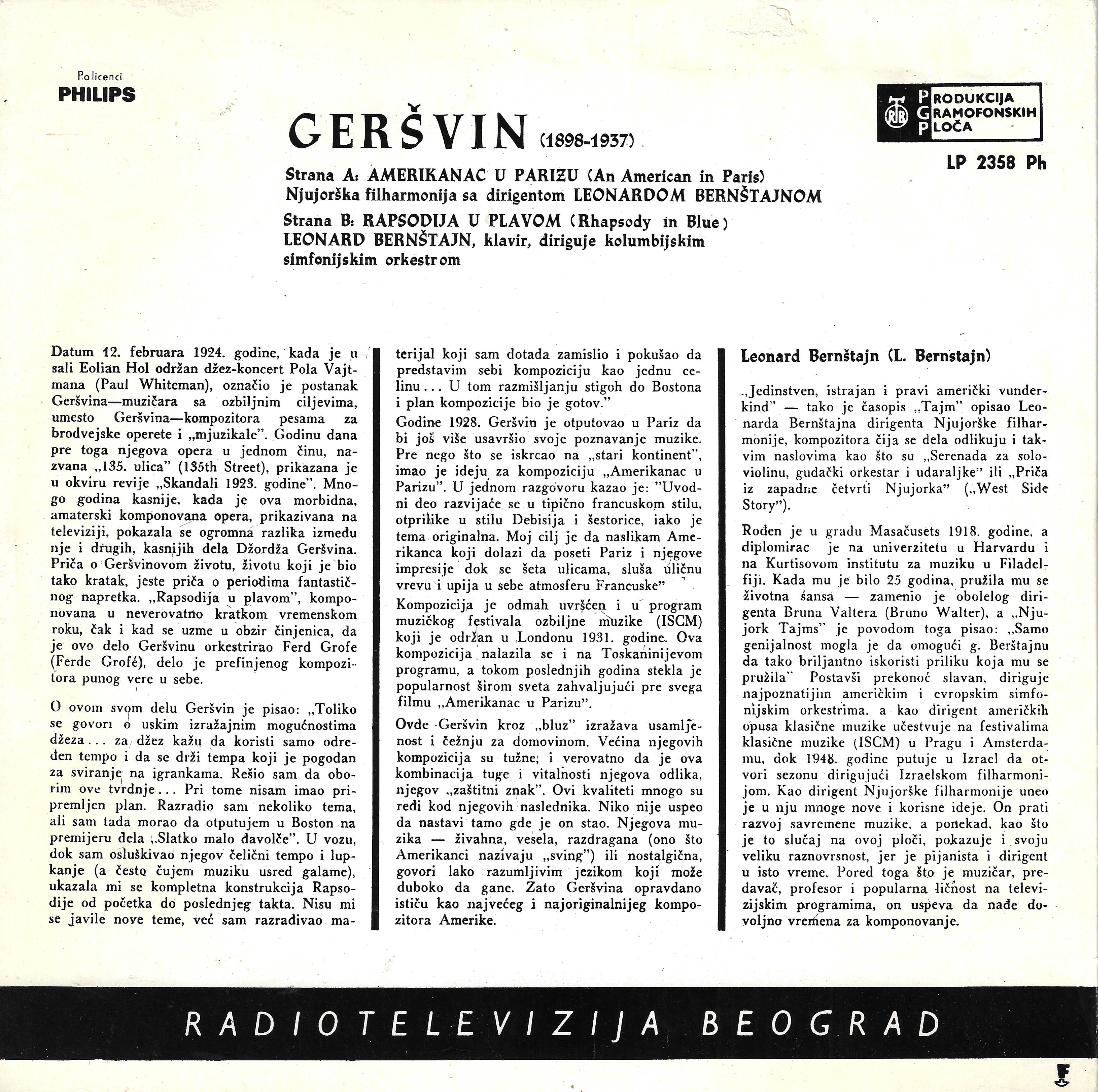 Gersvin - Leonard Bernstajn, Njujorška Filharmonija I Kolumbijski Simfonijski Orkestar – Amerikanac U Parizu; Rapsodija U Plavom / Гершвин, Леонард Бернстайн, Нью-Йоркская филармония и Колумбийский симфонический оркестр – Американец в Париже. Рапсодия в голубом