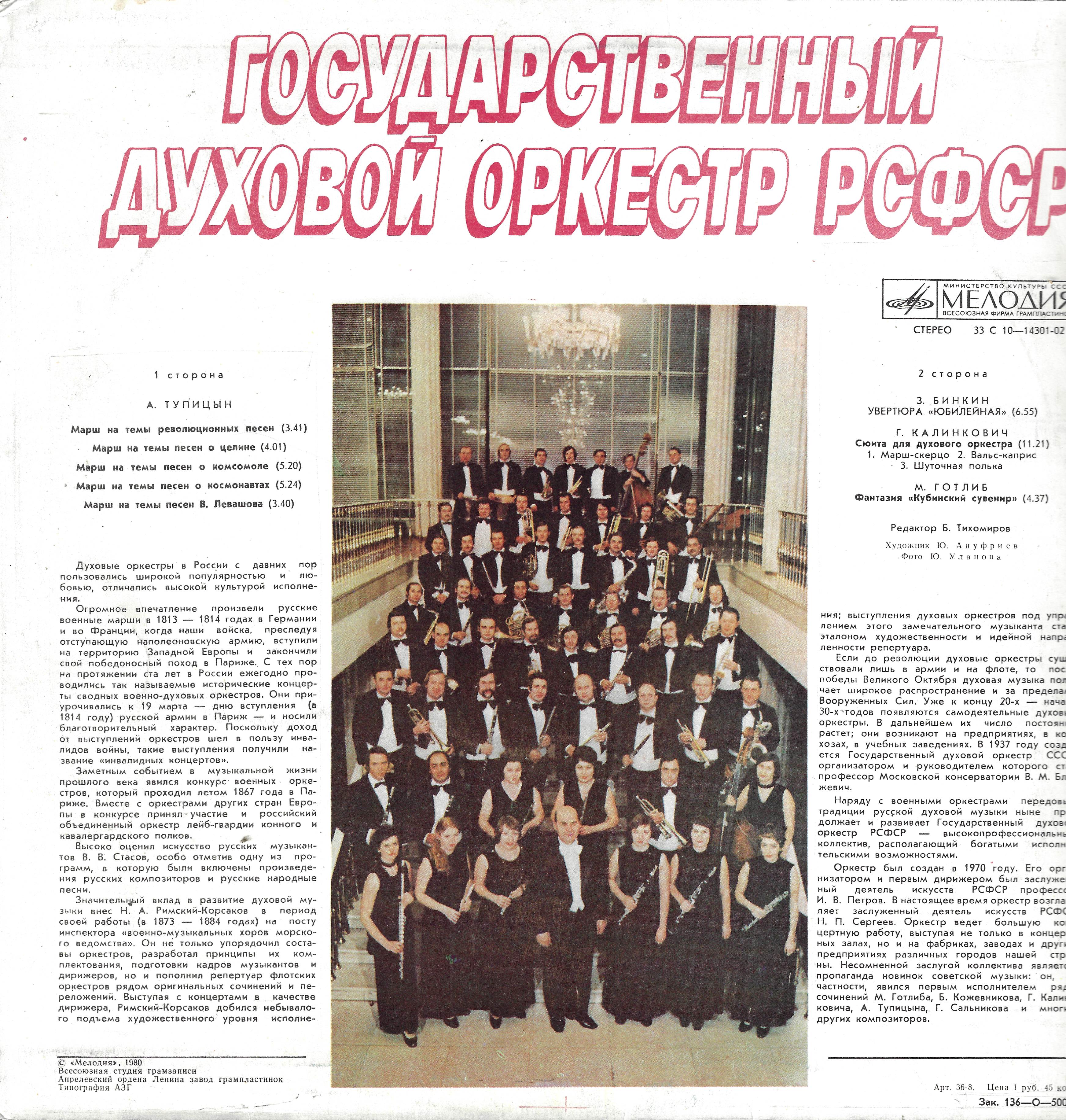 Наряду с военными оркестрами передовые традиции русской духовой музыки ныне продолжает и развивает Государственный духовой оркестр РСФСР — высокопрофессиональный коллектив, располагающий богатыми исполнительскими возможностями.