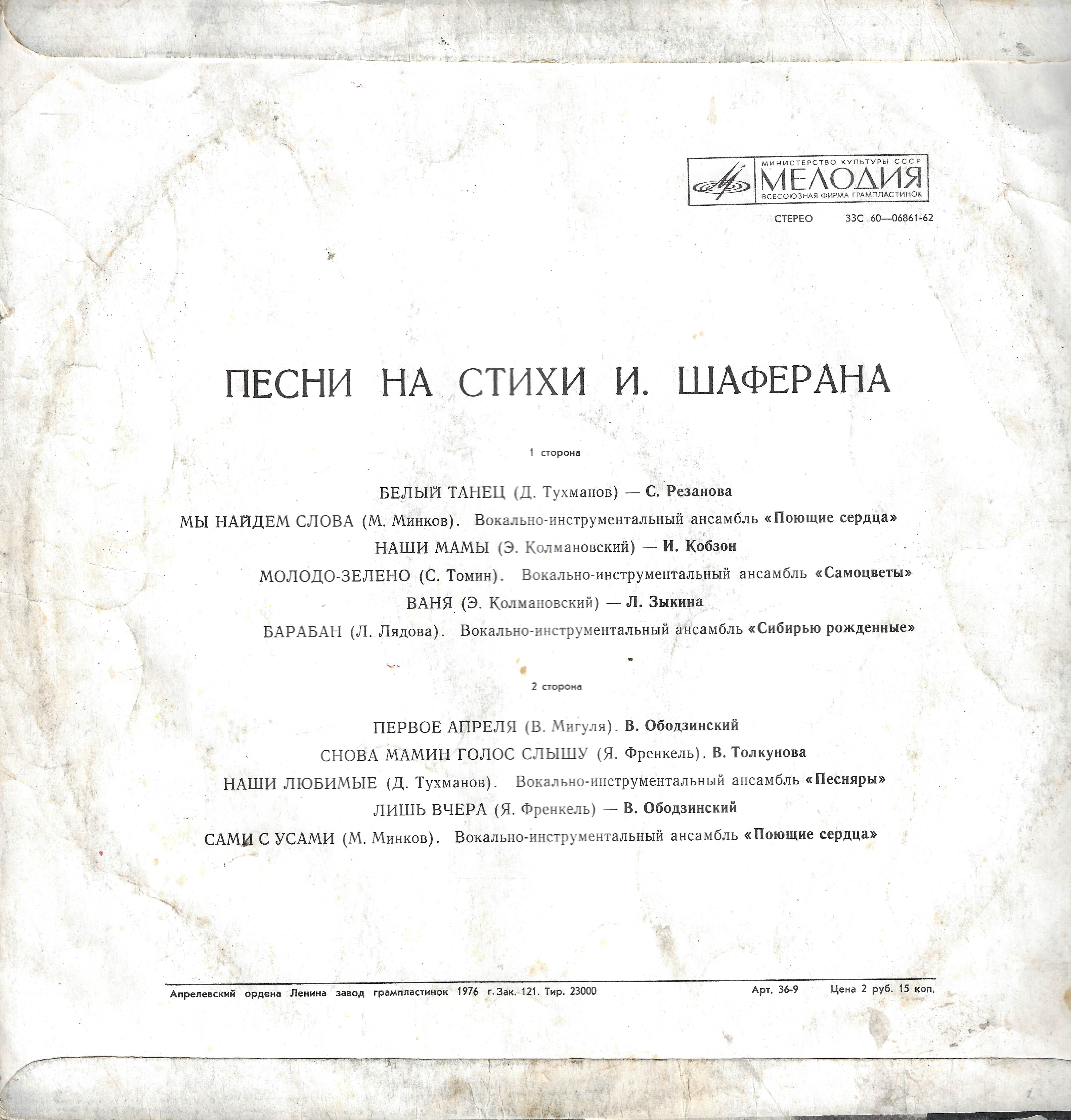 И. Шаферан - Белый танец. Песни на стихи И. Шаферана