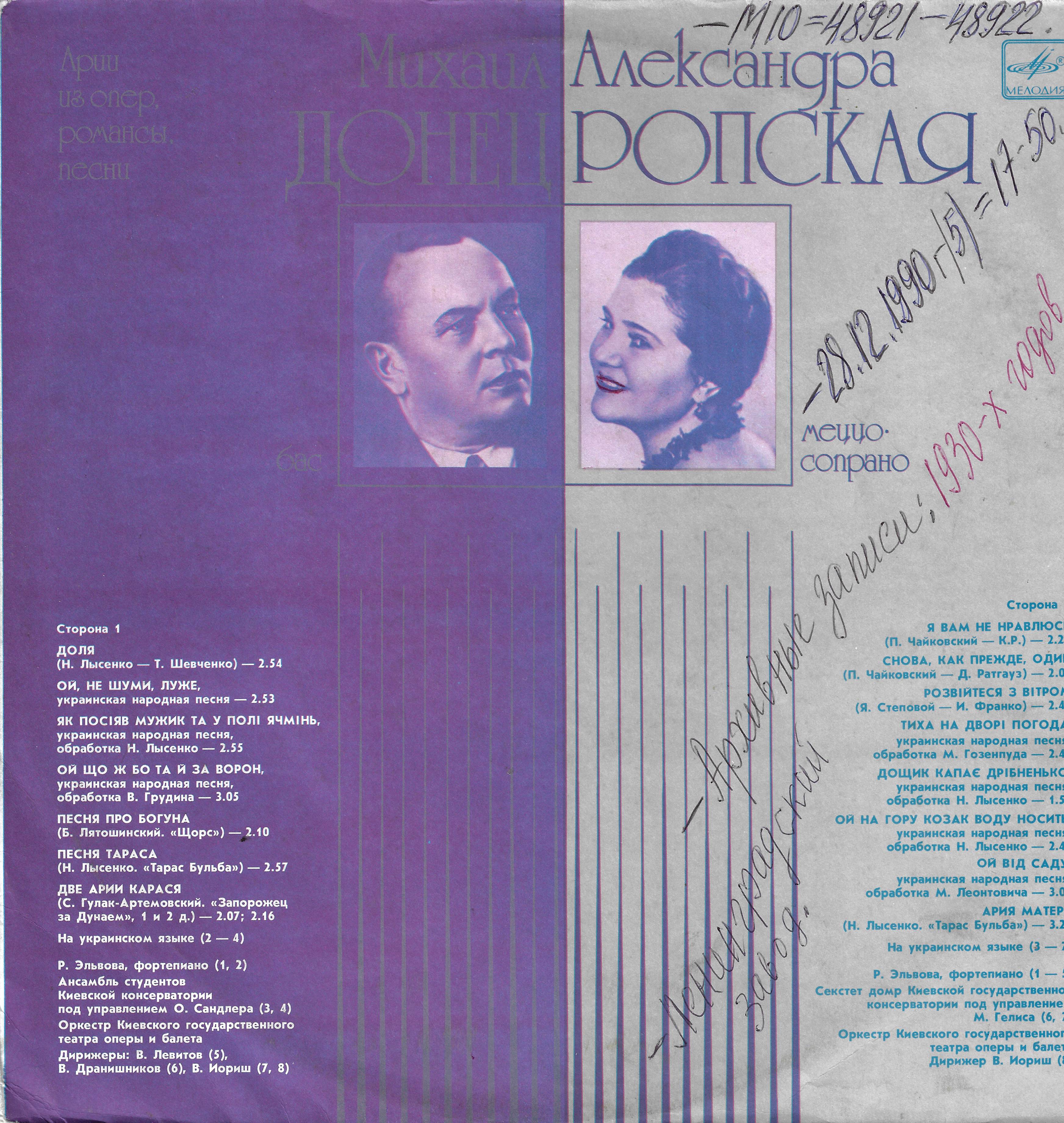 Михаил Донец, Александра Ропская, меццо-сопрано – Арии из опер, романсы, песни